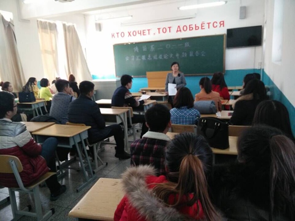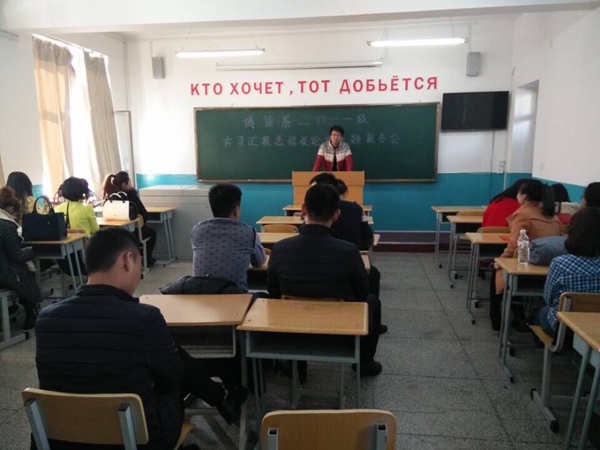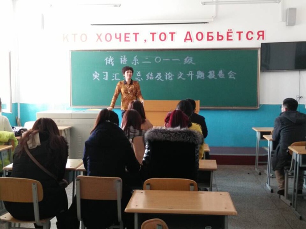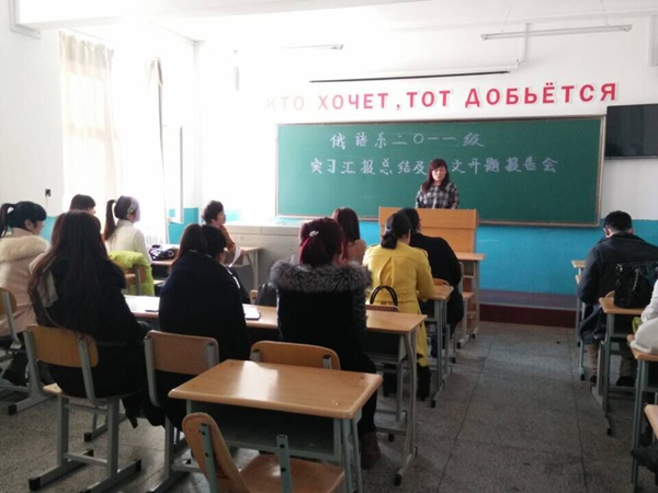 2015年3月4日下午14:00俄语系2011级本科生毕业实习总结汇报会在俄语楼举行,2011级13个班级300余名毕业生及俄语系主任、书记、教学主任、俄语系教师参加总结交流会。本次交流会以班级为单位,指派专业教师主持各班级总结交流会。在会上,同学们汇报了自己一学期的实习实践活动,畅谈了实践工作的感受,同学之间互相交流,对未来实际工作具有深刻的认识。各位专业教师对同学们的汇报做以点评,并解决大家在工作中遇到的困惑。本次总结会达到了总结工作、交流经验、发现问题、完善提高的基本目标,对进一步加强全系本科生实践教学环节的安排、加强对实践教学过程的管理与控制,提高实践培养环节的质量和效果,全面提升员工的综合素质与实践创新能力等都具有积极意义。