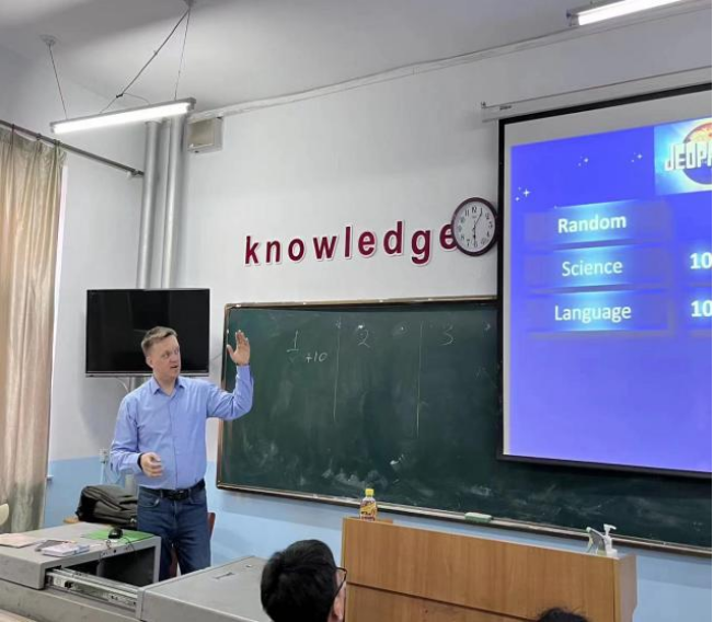 在上课过程中,奥格斯老师用了两个小游戏来进行开展,首先将同学们进行分组,共分为三组,通过让同学们抢答来加分,最后计算每个组的总分,来角逐出哪组是第一名,并对积极回答且得分多的同学分发奖品。两个游戏是关于科学常识,体育运动,动物,迪士尼,标语,计算机常识。在提高我们口语与听力的同时,还可以增进我们的知识。对此,同学们热情饱满,在面对老师提出的问题时,能够积极且流利的回答,同学们的主动交流和大胆互动也赢得了老师的点赞。