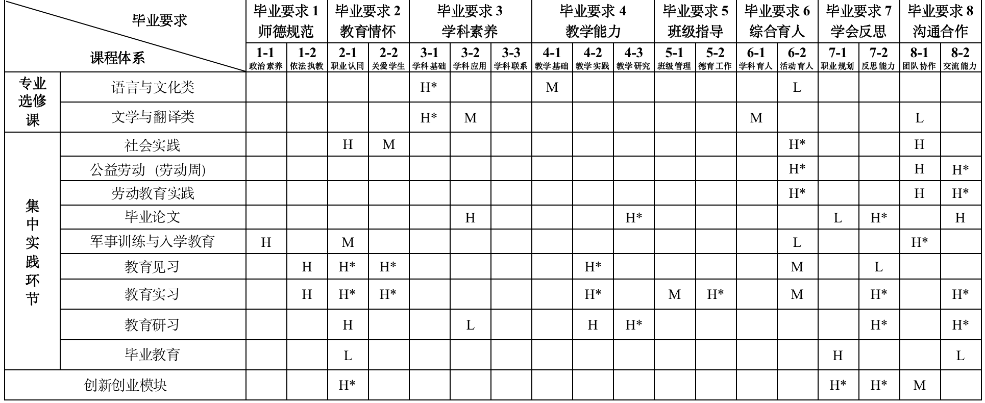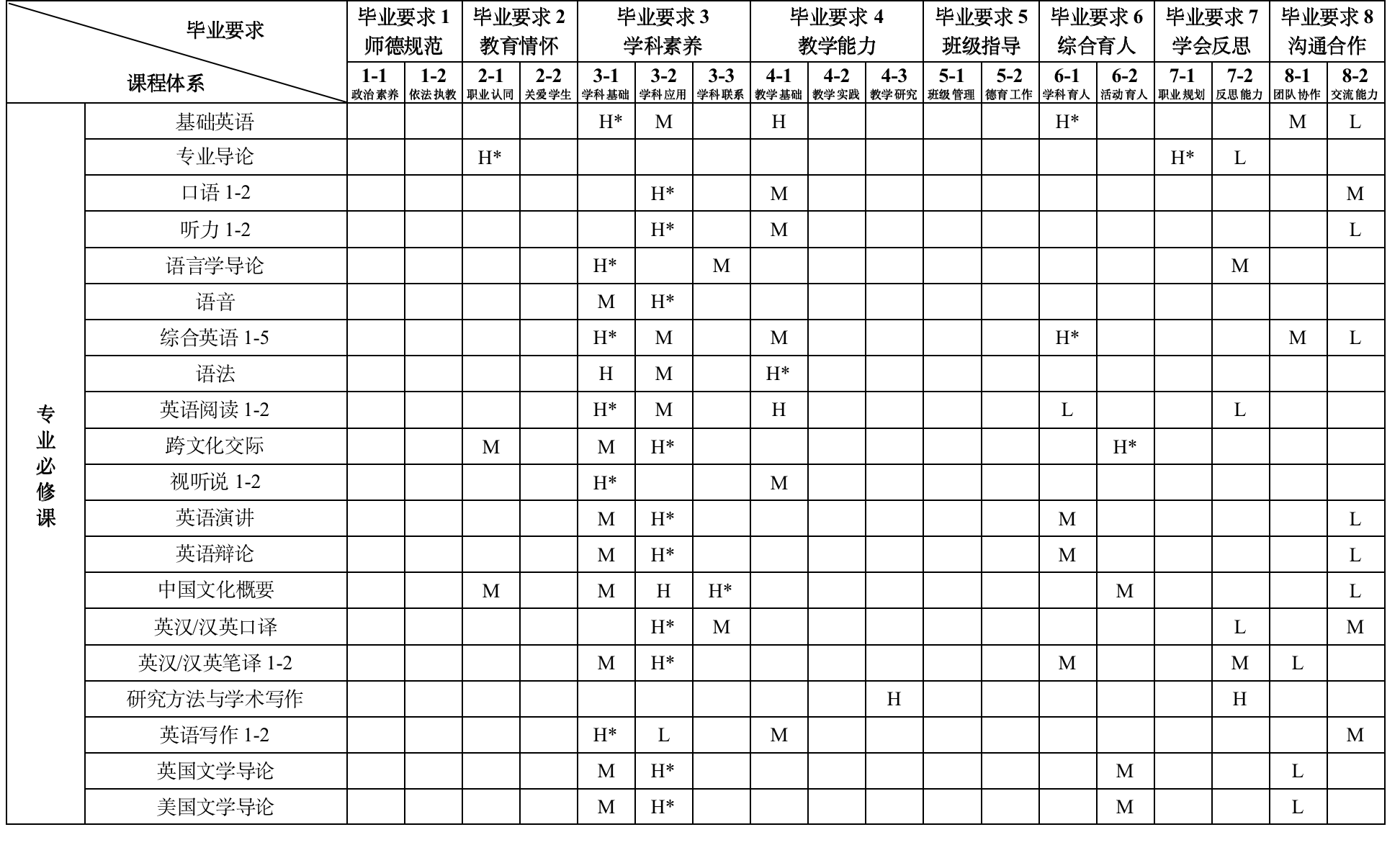 培养目标3:坚持立德树人,能够结合英语学科特点对中员工开展德育教育、心理健康教育、主题教育等综合育人活动。能够设计和开展促进员工跨文化交流的实践活动;掌握班集体建设与管理的策略与方法,胜任班级建设与管理工作。
