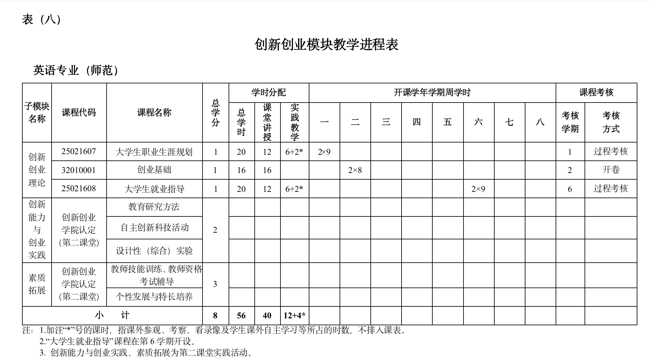 (四)本科课程教学进程表(表四)—(表八)