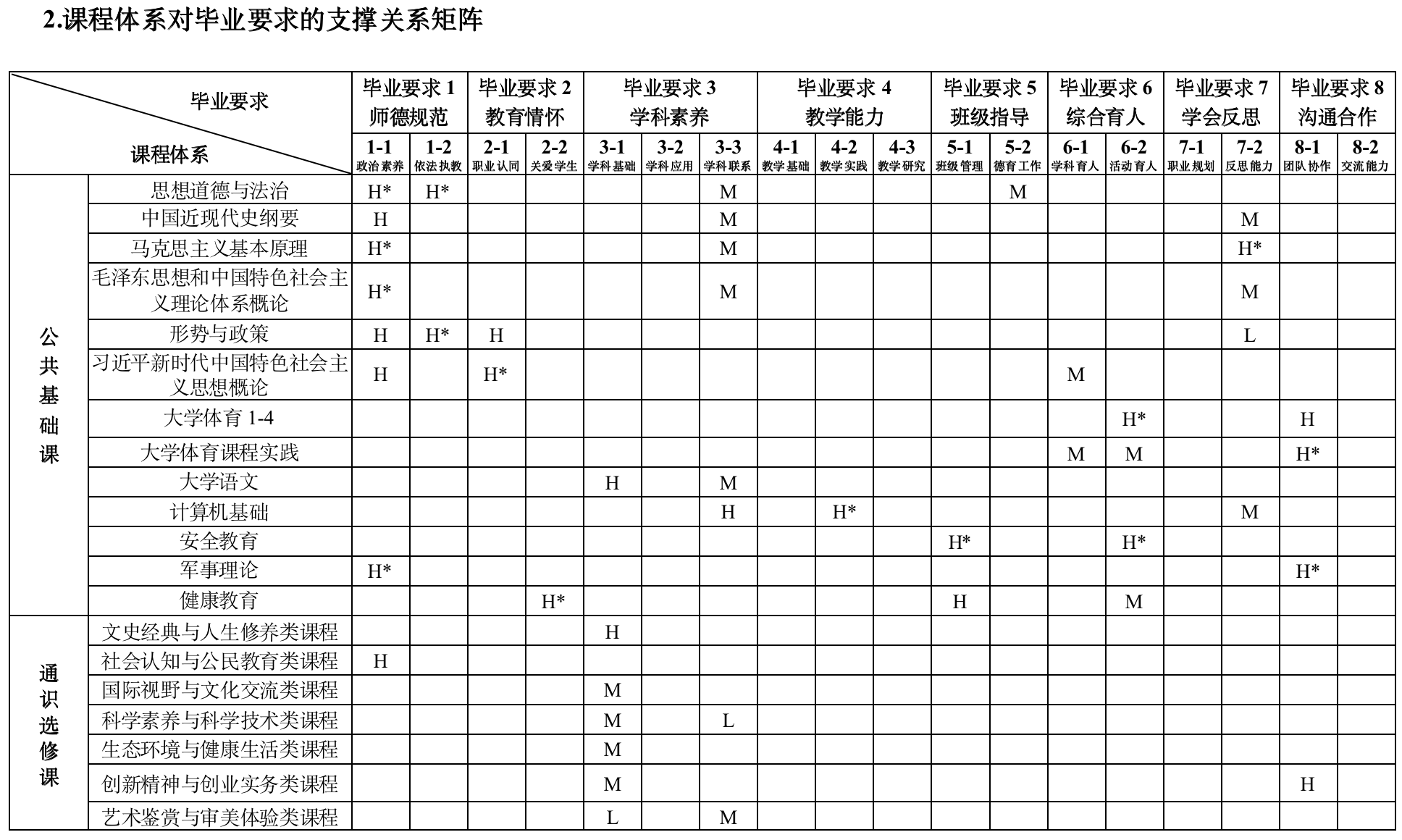 (二)课程体系对毕业要求支撑关系矩阵