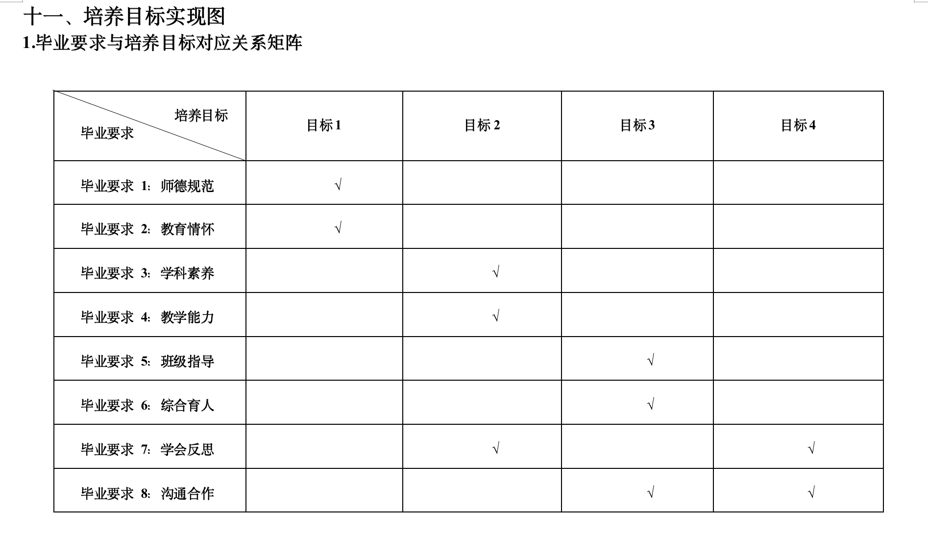 (一)毕业要求与培养目标对应关系矩阵
