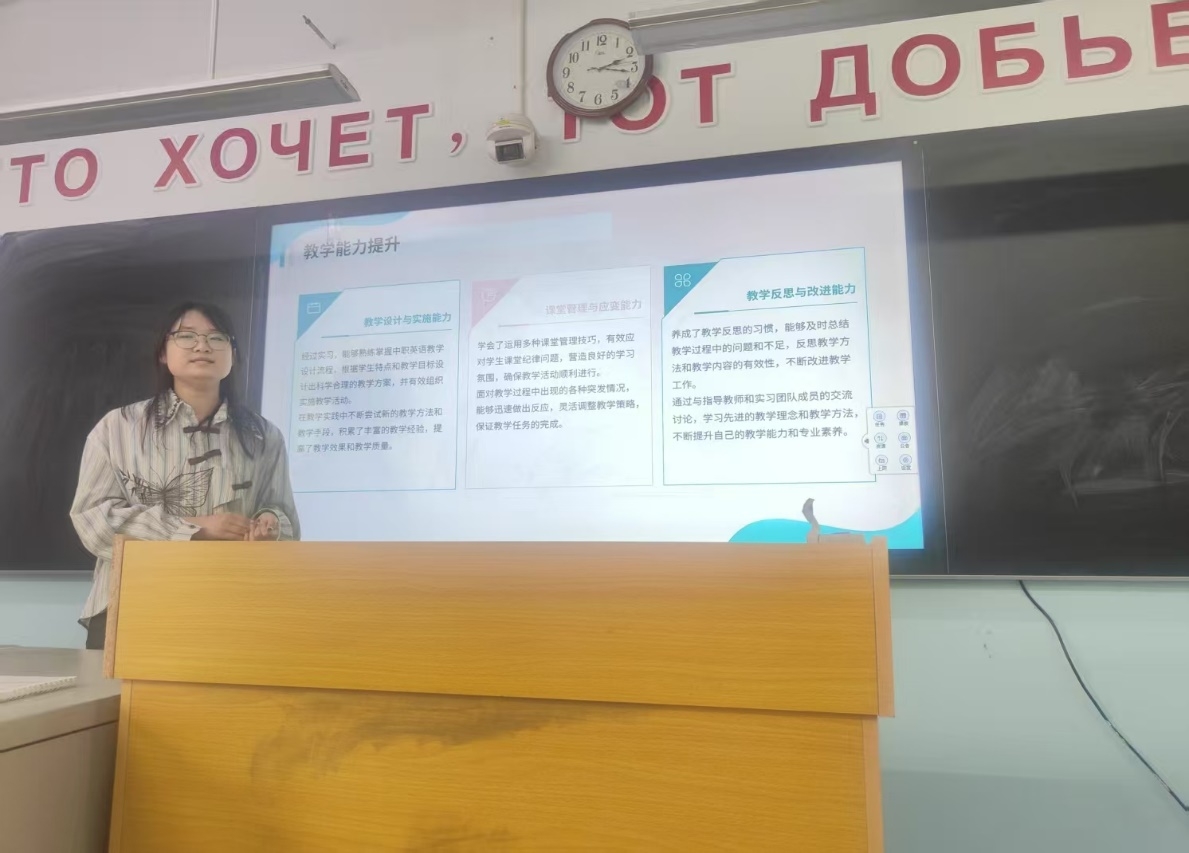 会议旨在总结2021级英语师范生在黑河市各中学的实习成果,并表彰表现突出的实习生。经过认真评选,7名优秀实习生脱颖而出,分别是房美鑫、杨慧茹、刘冬雪、岳思莹、饶焕、王燕和张名艳同学。