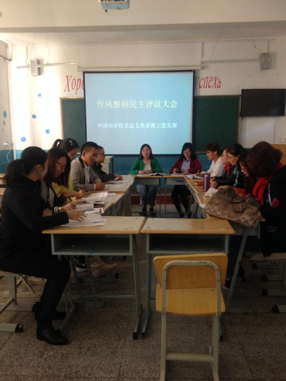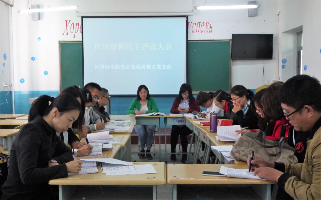 9月20日下午,英语教工党支部召开作风整顿专题组织生活会,支部书记郑颖与支部党员一道开展批评与自我批评。