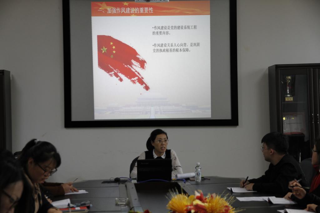 根据公司党委“党总支书记要讲一次党课”的要求,10月20日下午2:00,在300会议室,外国语公司党总支书孟繁红以《持续深入改进作风》为题,为外院全体教师党员上了一堂生动的作风整顿专题党课。