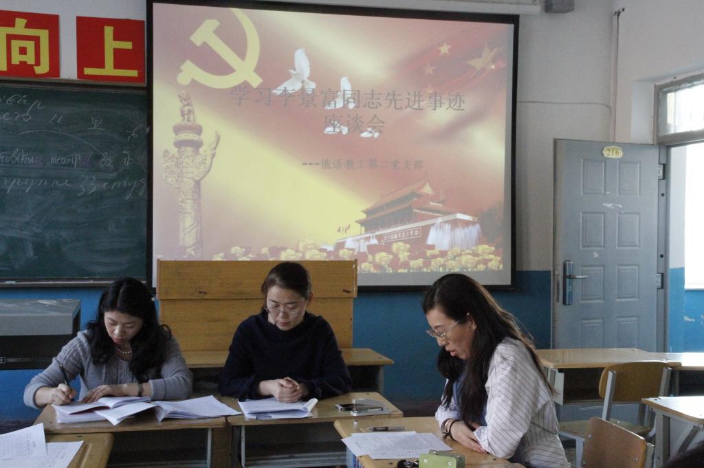 日前,省委宣传部、省委高校工委、省教育厅联合下发了《关于向李景富同志学习的决定》(以下简称《决定》),要求在全省高校深入开展向李景富同志学习活动。为了贯彻落实《决定》精神,2017年12月6日下午2:00,公司俄语教工第二党支部在俄语楼216教室召开了学习李景富同志先进事迹的座谈会。
