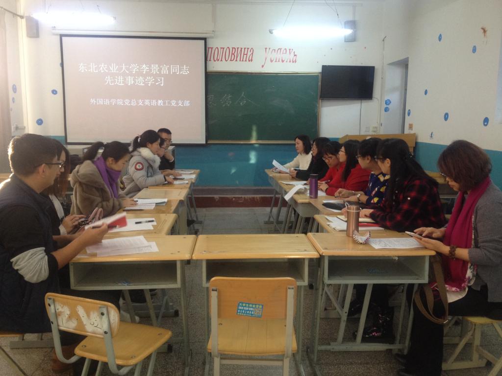 12月6日下午,公司党总支英语教工党支部书记郑颖带领全体党员深入学习宣传李景富同志先进事迹。她从李景富教授心有大我,至诚为国;执着育人、心中有爱;淡泊名利、甘于奉献三个方面介绍了李景富的先进事迹。李景富同志五十年如一日,始终坚守三尺讲台,潜心为祖国培养众多农业良才;他不断培育番茄品种,丰富老百姓的菜篮子;他的成果享誉全世界,被农民亲切的称为“中国番茄大王”。他用实际行动践行了一个优秀学者的执着,诠释了一位敬业教师的坚守,展示了一名时代楷模的高尚品格。他是“艰苦奋斗、自强不息”的东农精神的生动诠释,是学校各项事业发展的不竭动力。