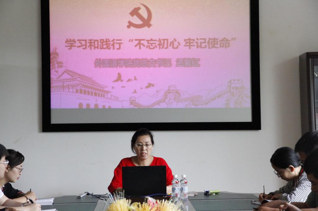 为在全体党员中开展“不忘初心、牢记使命”主题党日活动,激励广大党员干部进一步不忘初心、牢记使命、坚定信念、凝心聚力,6月29日早,外国语公司党总支组织教师党员开展题为《学习和践行“不忘初心 牢记使命”》专题党课,《学习和践行“不忘初心 牢记使命”》专题党课,由党总支书记孟繁红主讲。