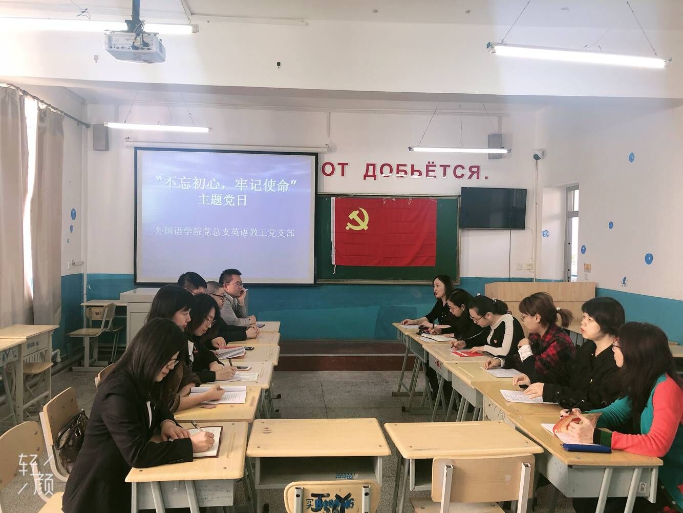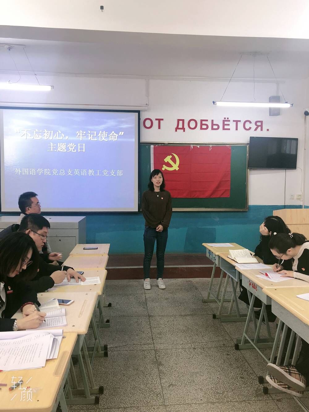 为了响应公司党委组织的支部书记党务工作“大学习大练兵大比武” 和在广大知识分子中深入开展“弘扬爱国奋斗精神,建功立业新时代”活动的号召,同时积极参与“党支部建设年”活动,助力公司争创一流党建工作,认真贯彻落实公司党委全面推行的支部主题党日活动的要求,继续认真学习习近平新时代中国特色社会主义思想和党的十九大精神,推进“两学一做”学习教育常态化制度化,2019年4月10日,英语教工党支部组织这次“不忘初心,牢记使命”党日活动。