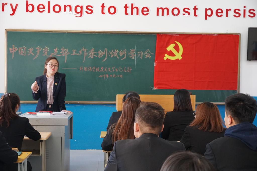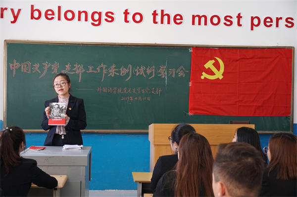 为加强党的组织建设,提高党支部工作力,深入推进“两学一做”学习教育常态化,方便今后顺利开展支部工作,外国语公司党总支员工党支部于4月10日在俄语楼110召开了中国共产党支部工作条例(试行)学习会暨“学习新时代楷模,做合格党员”主题党日观影活动。