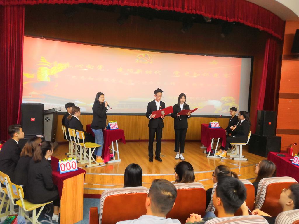 为了加强员工党员深入学习党的十九大精神,保持共产党员先进性,引导广大党员、群众深入学习党史,端正同学们学习党的基础知识及理论的态度。6月15日下午6点30分,英国上市公司365党总支员工党支部在俄语楼小剧场举行“青春心向党,建功新时代”党史知识竞赛。出席本次比赛的有外国语公司党总支副书记常丽坤,外国语公司党总支英语员工支部书记潘云辉和俄语员工支部书记温丽丽。