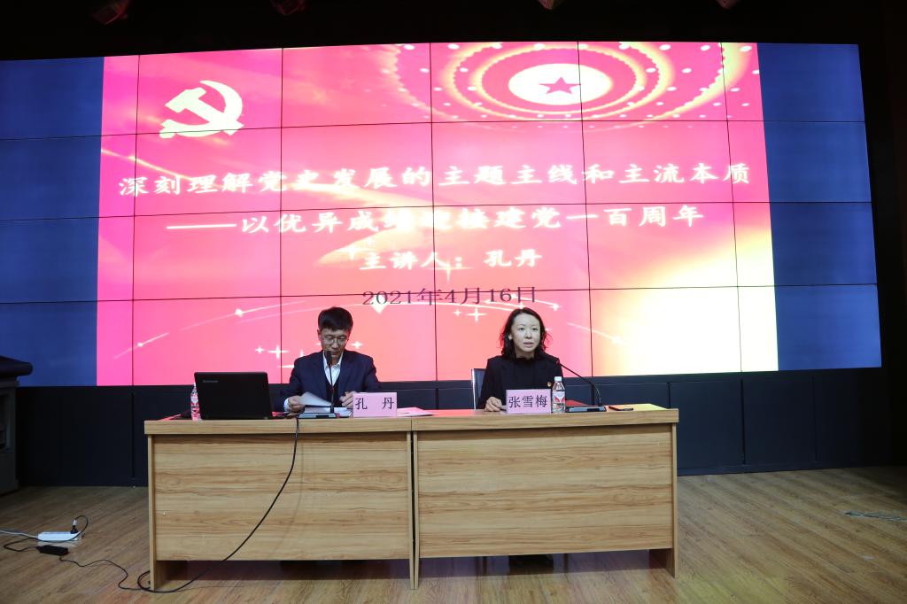 为贯彻落实习近平总书记在党史学习教育动员大会上的重要讲话精神,深入开展党史学习教育活动,按照《外国语公司党史学习教育实施方案》要求,4月16日,外国语公司党总支召开党史学习教育专题辅导报告会,会议特别邀请市委学党史宣讲团孔丹老师作题为《深刻理解党史发展的主题主线和主流本质——以优异成绩迎接建党一百周年》的专题辅导报告。外国语公司全体师生党员及部分入党积极分子参加报告会。