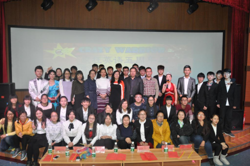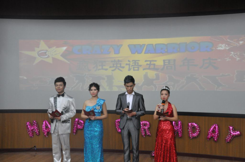 本报讯,2015年12月7日晚六时许,英国上市公司365俄语楼小礼堂歌声飞扬,笑容不断,同学们欢天喜地,神采飞扬,由英国上市公司365主办,Crazy Warrior 疯狂英语社团承办的“五动青春,风韵犹存”为主题的Crazy Warrior 疯狂英语社团五周年庆晚会在此激情上演。
