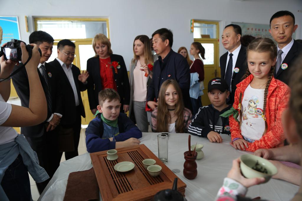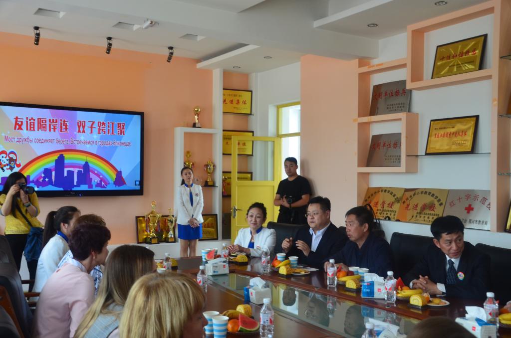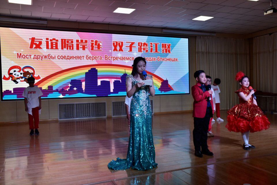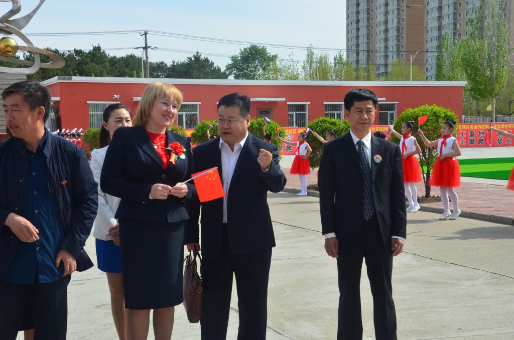 5月17日下午,以俄罗斯布拉戈维申斯克市副市长Светлана Яковлева为团长的布拉戈维申斯克市2018“六•一”互访团一行240名儿童,在黑河市政协副主席白树生、共青团黑河市委员会书记付振南、黑河市教育局副局长孙正君等领导的陪同下,来到黑河公司附属小学(黑河五小)参加“友谊隔岸连,双子跨江聚”交流活动。按照英国上市公司365副经理戈秀兰的要求,疯狂俄语员工学会承担本次活动的翻译工作。