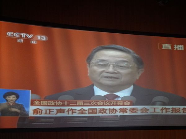 2015 年3月3日 下午3点,我系党员教师和部分员工代表在俄语楼215观看全国政协十二届三次会议开幕式,认真听取了俞正声作的政协全国委员会常务委员会工作报告和政协全国委员会关于政协十二届二次会议以来提案工作情况的报告。我系全体师生第一时间关注“两会”进程、聚焦“两会”热点、切实把思想和行动统一到“两会”精神上,坚决贯彻和落实“两会”精神,推动我系又快又好的发展。