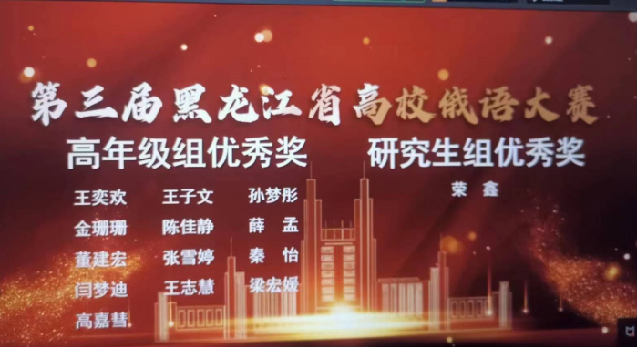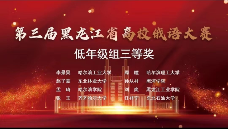 2022年11月18日至19日,第三届黑龙江省高校俄语大赛于云端成功举办。大赛由黑龙江省普通高等学校创新创业教育指导委员会、黑龙江省俄语学会、黑龙江省俄语教学研究中心共同主办,黑龙江省教育厅高等教育处支持举办,哈尔滨理工大学承办。大赛共有来自全省22所院校的58名员工参加,经过18日初赛的角逐共有23名员工入围复赛。公司2021级员工孙从衬荣获低年级组三等奖,2020级员工王子文获得高年级组优秀奖。