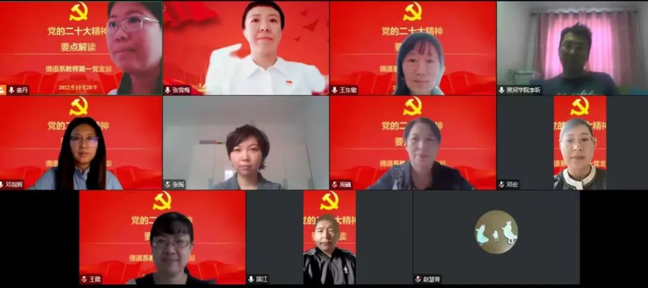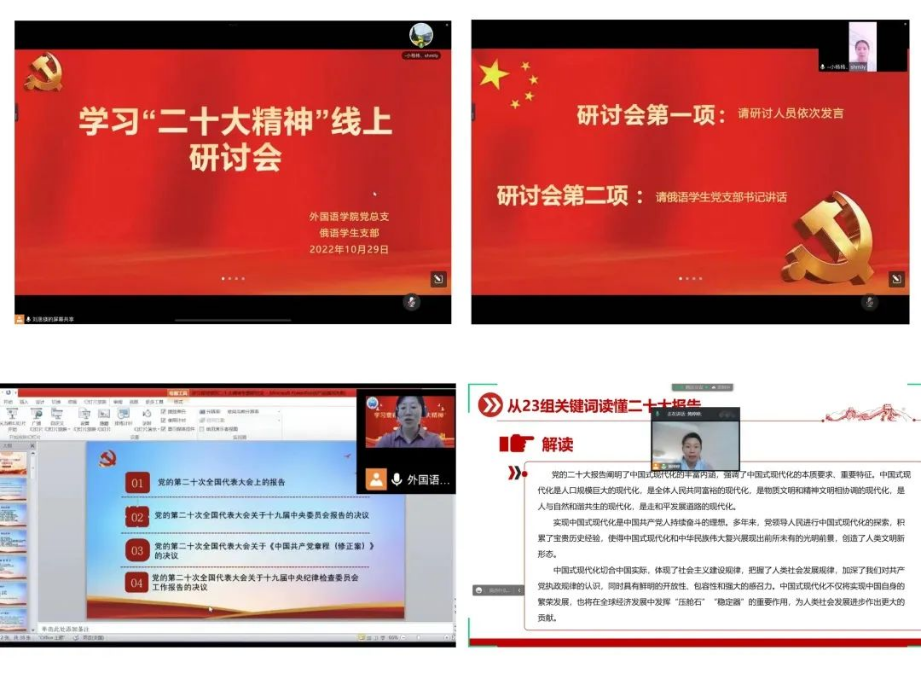10月28日下午,外国语公司党总支开展“学习二十大精神,践行誓言担使命”主题党日活动。党日活动三个教工党支部和两个员工支部分别以线上形式进行。会议围绕党的二十大报告精神,组织集体学习,党员结合自身实际,围绕学习党的二十大精神进行交流研讨。