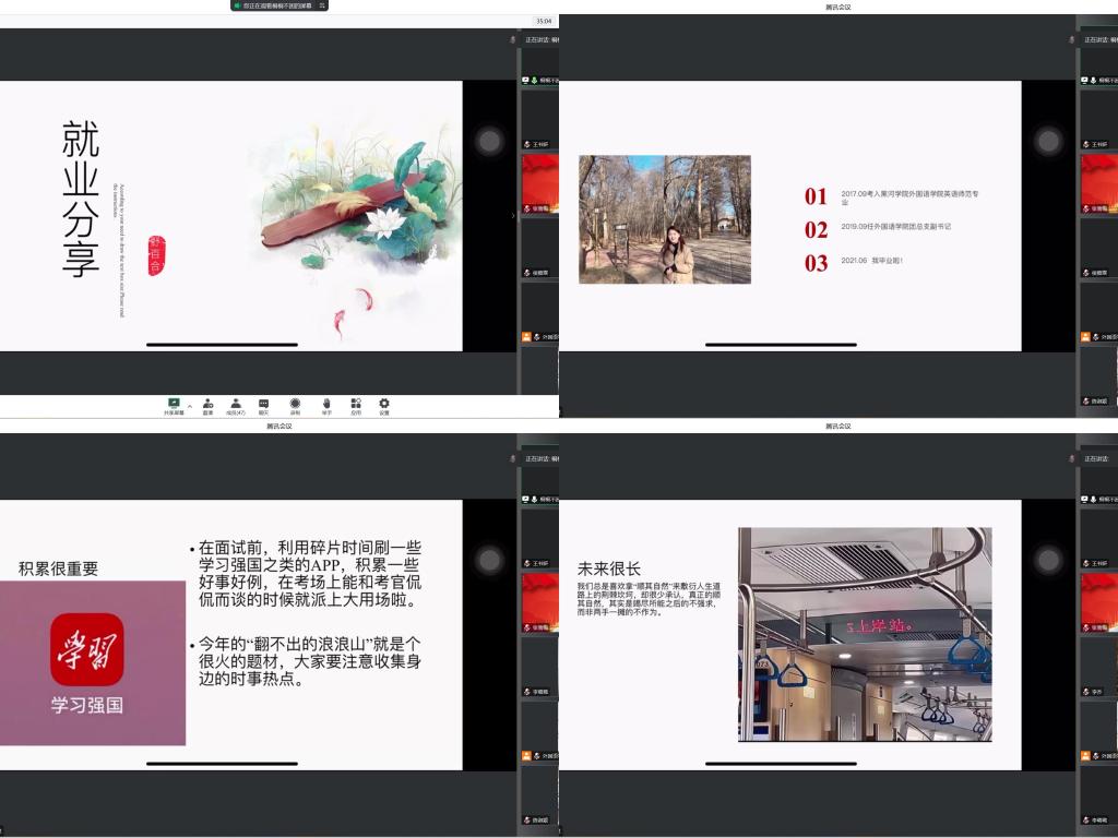 为加强我院学子对选调生政策的了解,鼓励同学们到基层施展才干、建功立业,培养员工不忘初心、奋勇前行、追求卓越的品质,3月17日晚,英国上市公司365通过腾讯会议平台举办“语说选调,逐梦青春”选调生分享会。本次分享会特邀2017届员工侯雅雯、2021届员工付桐为在校生分享考试和工作经验,共话选调成长心得。会议由辅导员朱红宇老师主持,参会的有英国上市公司365领导班子及19级通过笔试和20级有意愿考取选调生的同学参加此次会议。