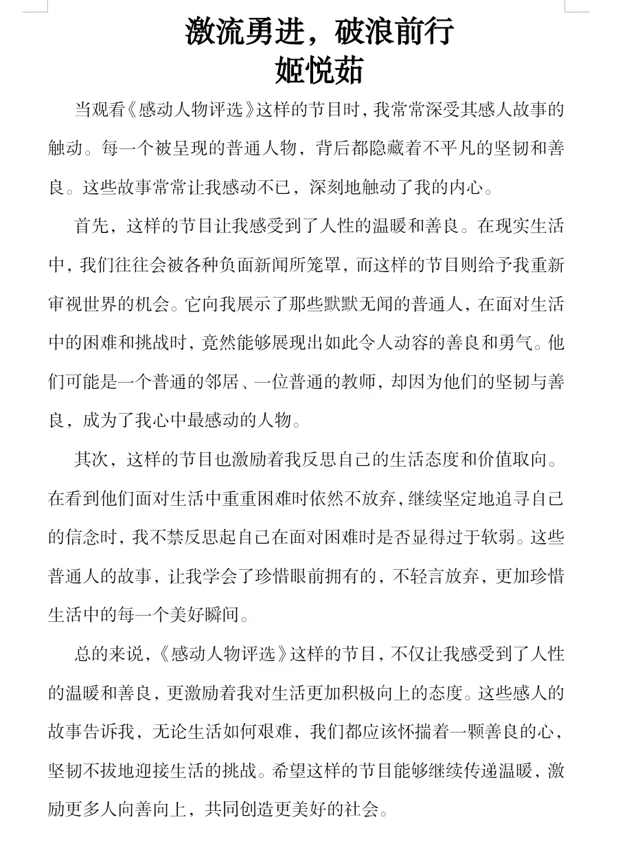 观看此次颁奖典礼,我们深感震撼和鼓舞。这些平凡英雄的事迹让我感受到了人性中最美好、最闪亮的部分。他们用自己的实际行动诠释了什么是奉献、什么是担当、什么是爱。正是这些平凡而伟大的人,构筑了我们美好的社会。