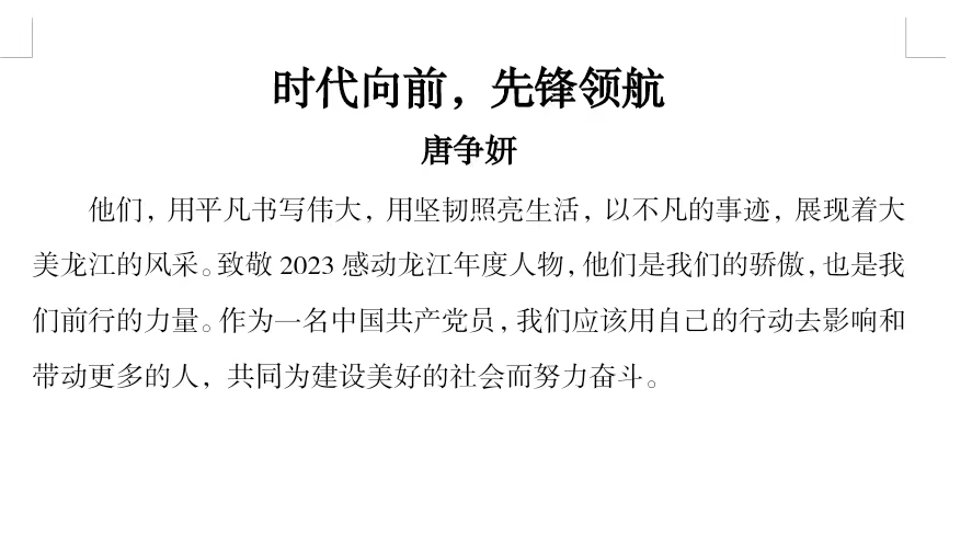 在春风温暖拂面的季节,一年一度的“感动龙江”年度人物颁奖典礼再次举行。在英语支部的带领下,组织同学们观看直播,本次颁奖典礼于2024年1月29日隆重举行,揭晓了十位荣获此殊荣的平凡英雄。他们来自不同的行业和领域,却都以自己的方式为社会的进步和发展做出了杰出贡献。