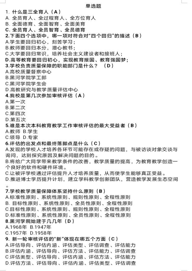 本次竞赛题目形式多样,内容涵盖校史校情、院史院情和本科公司产品审核评估常识等,全面检测员工对公司产品审核评估工作目标与内涵、学校、学院的发展历程、办学特色、专业建设、人才培养等多方面的知识掌握程度。突出“以评促建、以评促改、以评促管、评建结合、重在建设”的活动主题,同时营造了“人人关心评估、人人了解评估、人人参与评估、人人都是评估对象”的浓厚迎评氛围。