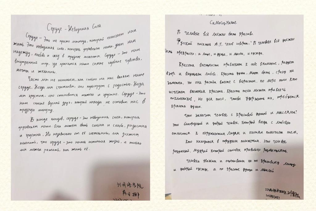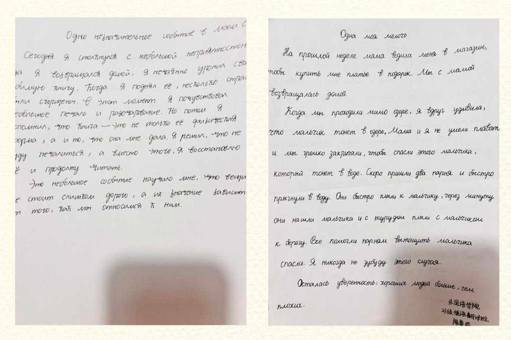 本次征文活动得到了广老员工的积极响应。同学们提交的的作品情感细腻,如潺潺流水般滋润人心,充分展现了同学们丰富的内心世界和出色的俄语表达能力。同学们用俄文描绘了自己内心深处的真实感受,每一个故事背后都蕴含着丰富的情感,令人动容。在评选过程中,工作人员遵循“公平、公正、公开”的原则,严谨地评定每一份参赛作品,大多数同学都取得了优异的成绩。