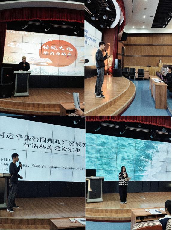 本次活动,于2024年10月28日,外语楼小剧场举行。 参与此次比赛的共有十组成员,共50名同学参与。其中有王璐萌组的《镜界非遗·语通中俄”:数字化动态保护非遗与实时翻译系统,构筑跨界民族文化交流新平台》,刘彤彤代表的《匠韵流年•遗艺寻踪》,孙佳伊代表的《“汉俄英三语”习近平谈治国理政平行语料库建设》,黎冬旭代表的《马克思主义视角下新时代思想与文化创新:基于“和而不同”文化观的国际化传播策略——以俄罗斯为对象的研究与实践》,周炜然代表的《方寸之间,一览千年》,姜雨辰代表的《咔咔解压发泄馆》,孙鹏博代表的《非遗数韵,双合华章》,张思慧代表的《智慧教育—拯救不完美的世界》,王静姝代表的《生态鹤鸣芦苇画》,袁博代表的《边疆中国传统文化》。