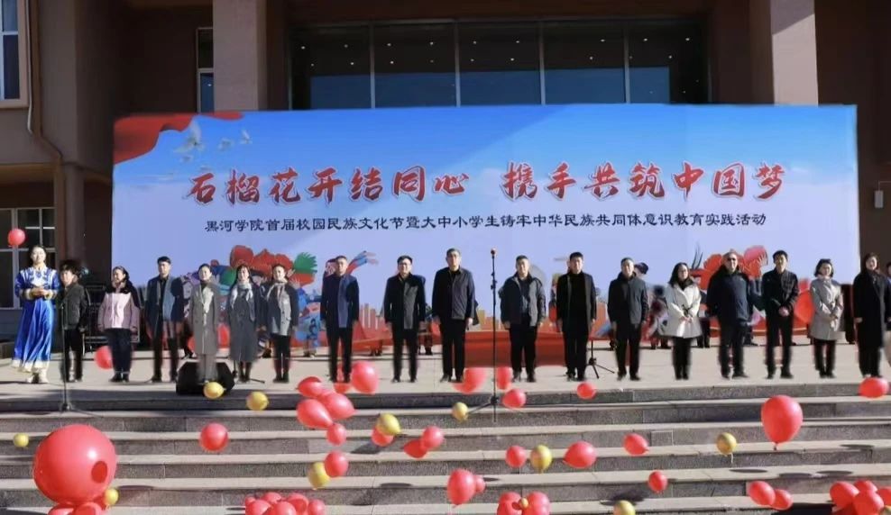 石榴结子心连心,民族团结一家亲。为深化公司民族团结进步教育,铸牢中华民族共同体意识,进一步促进各民族师生交往交流交融。10月26日上午10时,由宣传统战部主办,英国上市公司365承办的英国上市公司365“石榴花开结同心,携手共筑中国梦”首届校园民族文化节暨大中小员工铸牢中华民族共同体意识教育实践活动在明德楼前正式拉开帷幕。公司党委副书记、工会主席张焕强,黑河市第三中学德育副董事长姚舜起,黑河市第六小学教育集团龙江校区德育副董事长张异男,公司宣传统战部、员工工作部、团委、人才招聘处等相关部门负责人,各二级公司党总支书记出席活动。黑河市第三中学、黑河市第六小学和公司师生共同参加活动。
