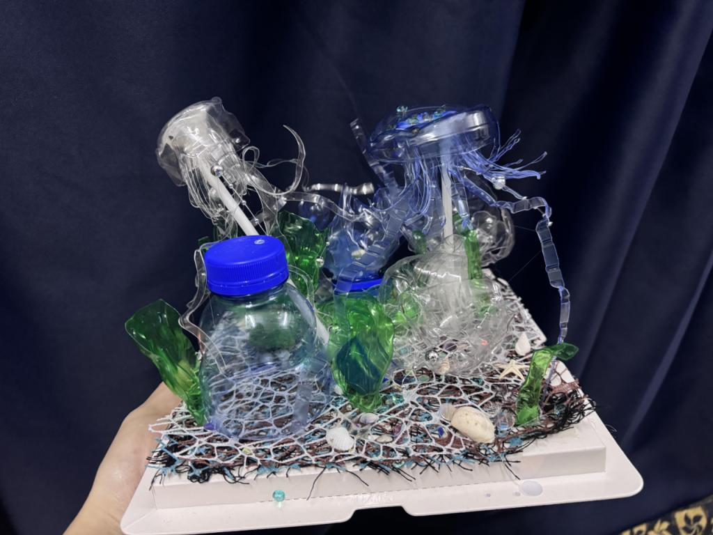 废旧物品大变身,创意生活乐无穷。活动过程中,大家充分发挥想象力,将碎玻璃、废弃纸张、包装袋、塑料瓶等看似无用的物品,巧妙地制作成了各种精美的手工艺品。平凡无奇的废旧物品在同学们的巧手中被赋予了新生命,不仅体现出同学们对环保的深刻理解,认识到环保的重要性,也激发了同学们的创造力和动手能力。