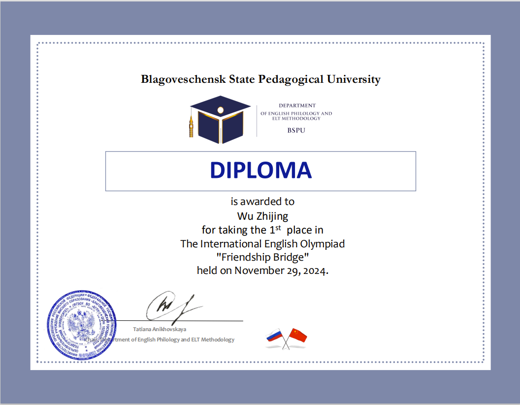 2024年11月29日,公司英语系员工参加了由俄罗斯高校布拉戈维申斯克国立师范大学英语系举办的第二届国际英语奥林匹克竞赛。本次奥林匹克竞赛设立以下目标:培养和保持员工学习英语作为国际交流工具的兴趣;评估员工的整体交际能力水平;提高员工对俄罗斯、中国和英语国家文化的认识;在两国员工之间搭建语言友谊的桥梁。