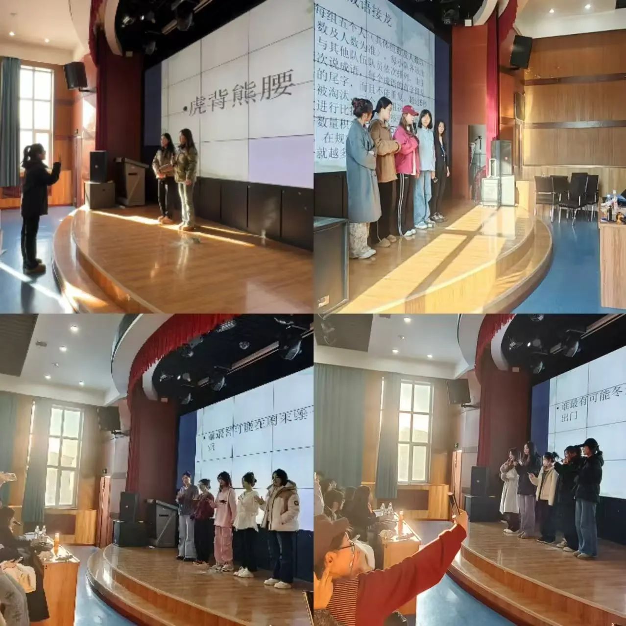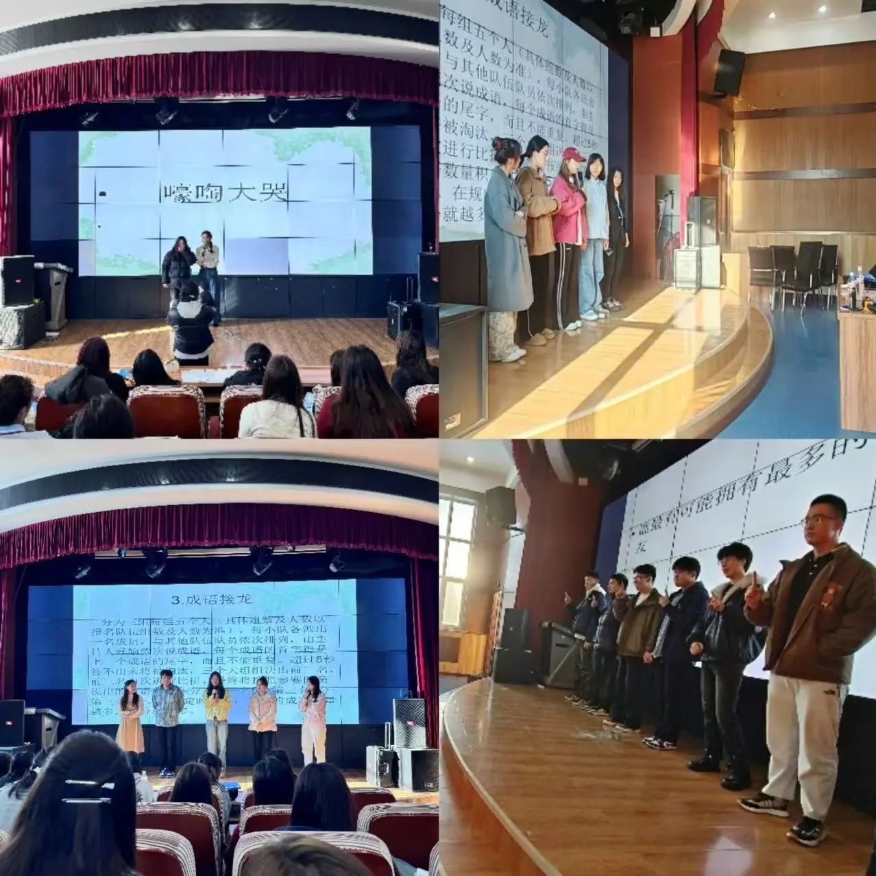 随后,“成语接龙”游戏欢乐开场。同学们站成一排,在你来我往间,欢笑声、呼喊声、讨论声交织回荡,绘就了一幅满是蓬勃朝气与团结友爱的青春画卷。