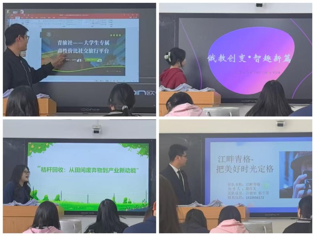 大赛现场气氛热烈,充满创新活力。首先,主持人详细介绍了比赛规则,为活动拉开序幕。其次,参赛团队依次上台,围绕项目创意、市场分析、商业模式等展开精彩演讲,体现了选手们的创新精神和创业热情,展示了外语专业与创新创业结合的独特视角。