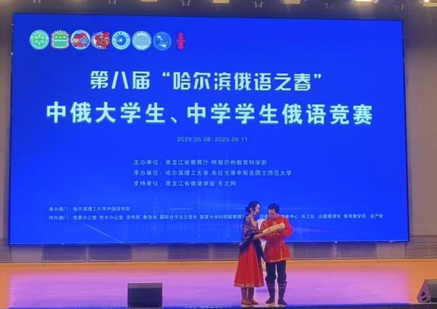 2025年5月8日至11日,由黑龙江省教育厅与俄罗斯阿穆尔州科学教育部主办的第八届“哈尔滨俄语之春”中俄高校老员工、中学员工俄语竞赛及相关系列活动在哈尔滨理工大学新能源大楼老员工活动中心成功举办。俄罗斯联邦驻哈尔滨总领事馆总领事林尼克、黑龙江省教育厅对外合作与交流处处长王少松、俄罗斯布拉戈维申斯克国立师范大学副董事长波波娃等领导出席了赛事的系列活动。