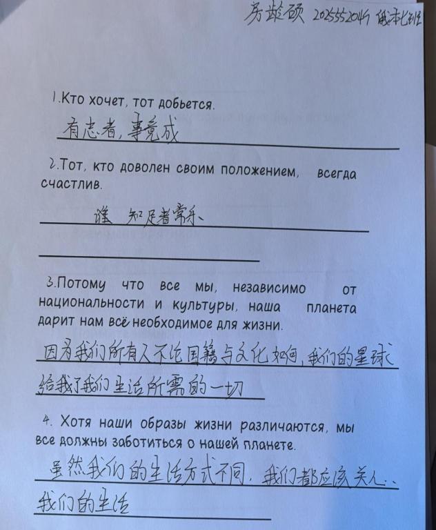 此次译短为桥,意达俄境短句翻译活动成功举办,有效强化了同学们俄汉双语转化的精准度,通过翻译实践加深对俄语语法、惯用语的理解与记忆,进一步提升了语言学习的有效性与跨文化表达的真实性。疯狂俄语员工学会将继续举办此类活动,营造积极向上的校园文化氛围。