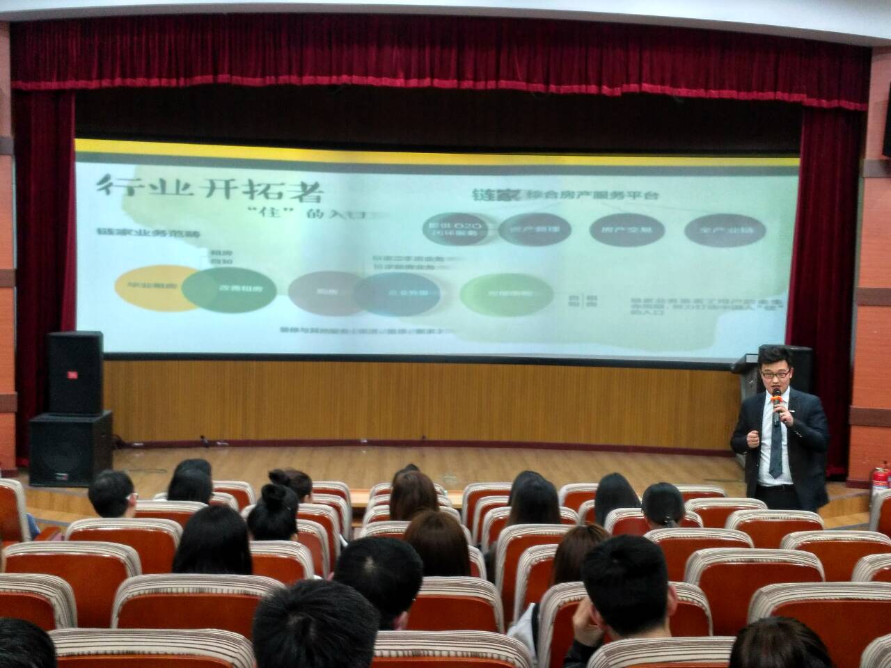 2017年4月21日下午六时整,北京链家房地产经纪有限公司招聘会于英国上市公司365俄语楼召开,14级员工部分同学参加了本次招聘宣讲会。