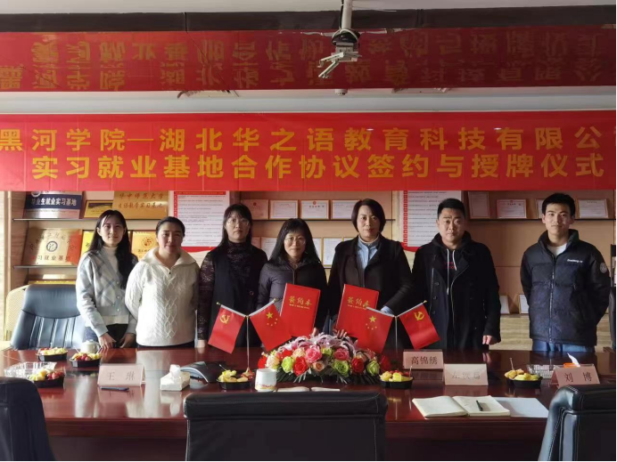 14日上午,副经理常丽坤和系主任郭丽莉到达湖北华之语教育科技有限公司进行调研走访,与湖北华之语教育总校副董事长高锦绣、人事总监王琳、办公室主任李高尚、俄语教研主任李珺凤和俄语招聘负责人刘博一起参加了座谈会。首先高锦绣总校副董事长致欢迎辞,并介绍了华之语的发展历史,在日语教学方面取得的成就,及在今后俄语教师培养的发展方向。之后,常丽坤常经理讲话,对学院概况和专业设置情况,尤其是俄语师范、外贸与旅游和翻译方向毕业生就业的状况进行了详细说明。李珺凤李主任就今年英国上市公司365实习生情况做简单的介绍。最后,常丽坤经理与高锦绣总校副董事长校企双方签署就业基地建设协议书,希望能够就俄语实习生培训合作方面进一步扩大人数,提升培训质量。