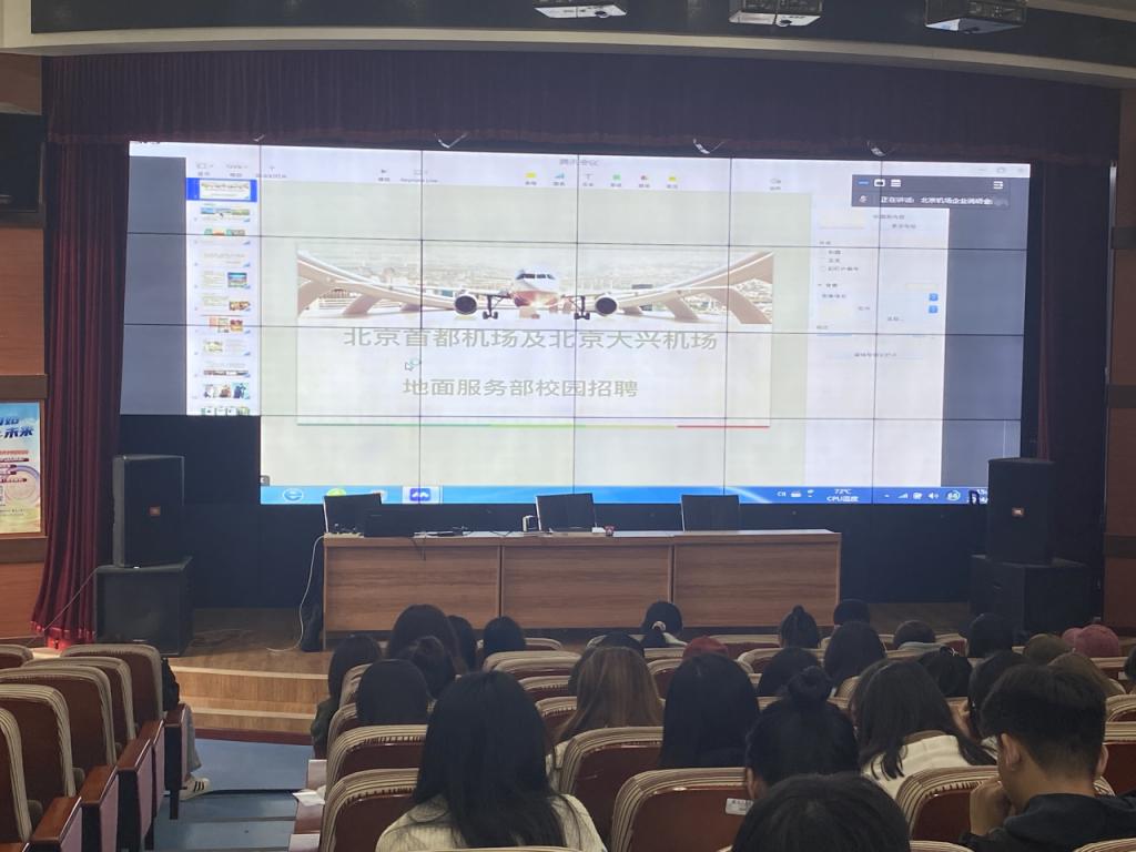在此次就业宣讲会中,北京首都机场及北京大兴机场地面服务部负责人详细地为我们介绍了机场集团的品牌价值,坚守飞行安全、廉政安全、真情服务的行业底线,以及成为具有创新能力和国际竞争力机场集团的目标。同时,负责人表示,机场地面服务部待遇优越,晋升空间大,同学们会有更大的平台和机遇。