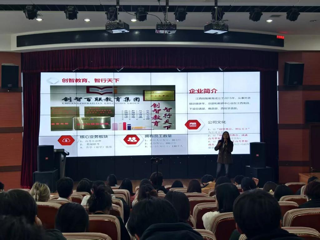 最后,珍岛集团负责人黄丹以一段精彩的视频引入主题,通过问答互动的方式调动现场气氛。她还借助照片、视频等素材,生动展现了珍岛集团的雄厚实力与众多荣誉成果,并详细介绍公司为实习生提供的完善待遇与可靠保障,赢得同学们的关注与期待。她还深入讲解了集团在人工智能营销、云计算等前沿领域的技术突破,以及这些技术如何与外语专业相结合,创造出独特的职业发展机会;同时分享了集团内部的“导师制”培养模式,确保每一位新员工都能获得资深专家的指导,快速融入团队并实现个人价值。