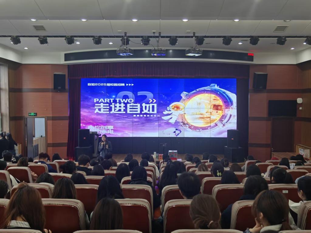 接着,北京自如负责人详细地为同学们介绍了自如的租房服务,包括智能门锁、租客社群活动等内容,让同学们了解到自如租房的便捷与贴心。随后,北京自如负责人还讲解了面向应届生的“成长加速计划”,涵盖系统培训课程和快速晋升通道。宣讲过程中,北京自如负责人还设置抽奖和抢答活动,同学们都踊跃参与,积极抢答。最后,北京自如负责人就同学们关心的工作强度、租房优惠政策等问题进行解答,诚邀大家加入自如。