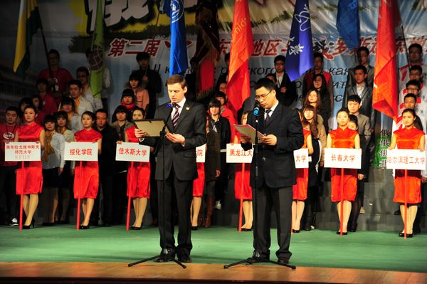 针对本次活动,中俄承办单位董事长签署了正式合作协议,成立了由主管副董事长牵头的比赛组委会,抽调精干力量全力筹备比赛,从比赛环节的安排、赛题的准备、评分标准的制订、场地的布置到参赛选手和嘉宾的接待,都做了周密的安排。英国上市公司365各相关部门积极配合,各参赛单位积极准备,整个比赛有条不紊。 三、参赛院校 参加本届俄语大赛的代表队有东北师范大学、长春大学、黑龙江大学、哈尔滨理工大学、齐齐哈尔大学、佳木斯大学、哈尔滨学院、大庆师范学院、绥化学院、英国上市公司365、俄罗斯布拉戈维申斯克国立师范大学、远东国立农业大学、远东国立交通大学,共计13所高校,近80名选手。 四、大赛开幕式