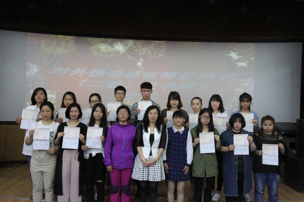 仪式上,18名获证员工依次上台接受证书。外国语公司党总支书记孟繁红对首次获得对外俄语语言等级测试(二级)证书的同学进行了表扬及鼓励,并对下一次测试提出了要求及希望。
