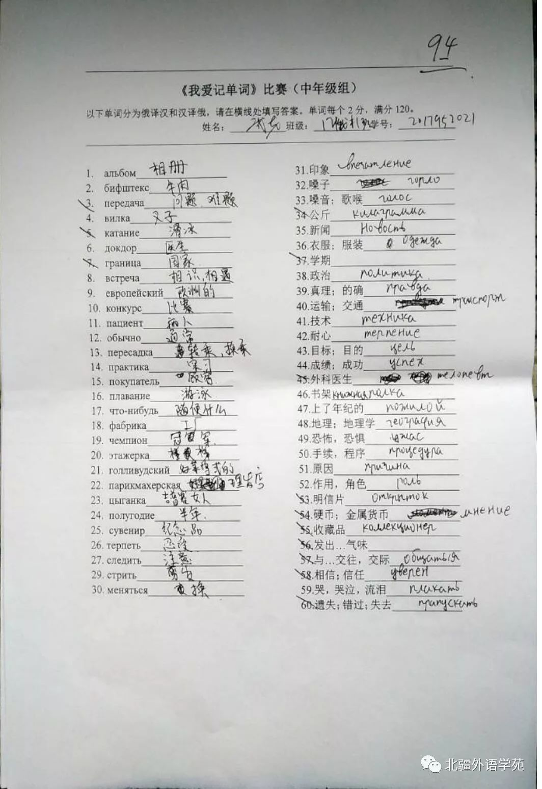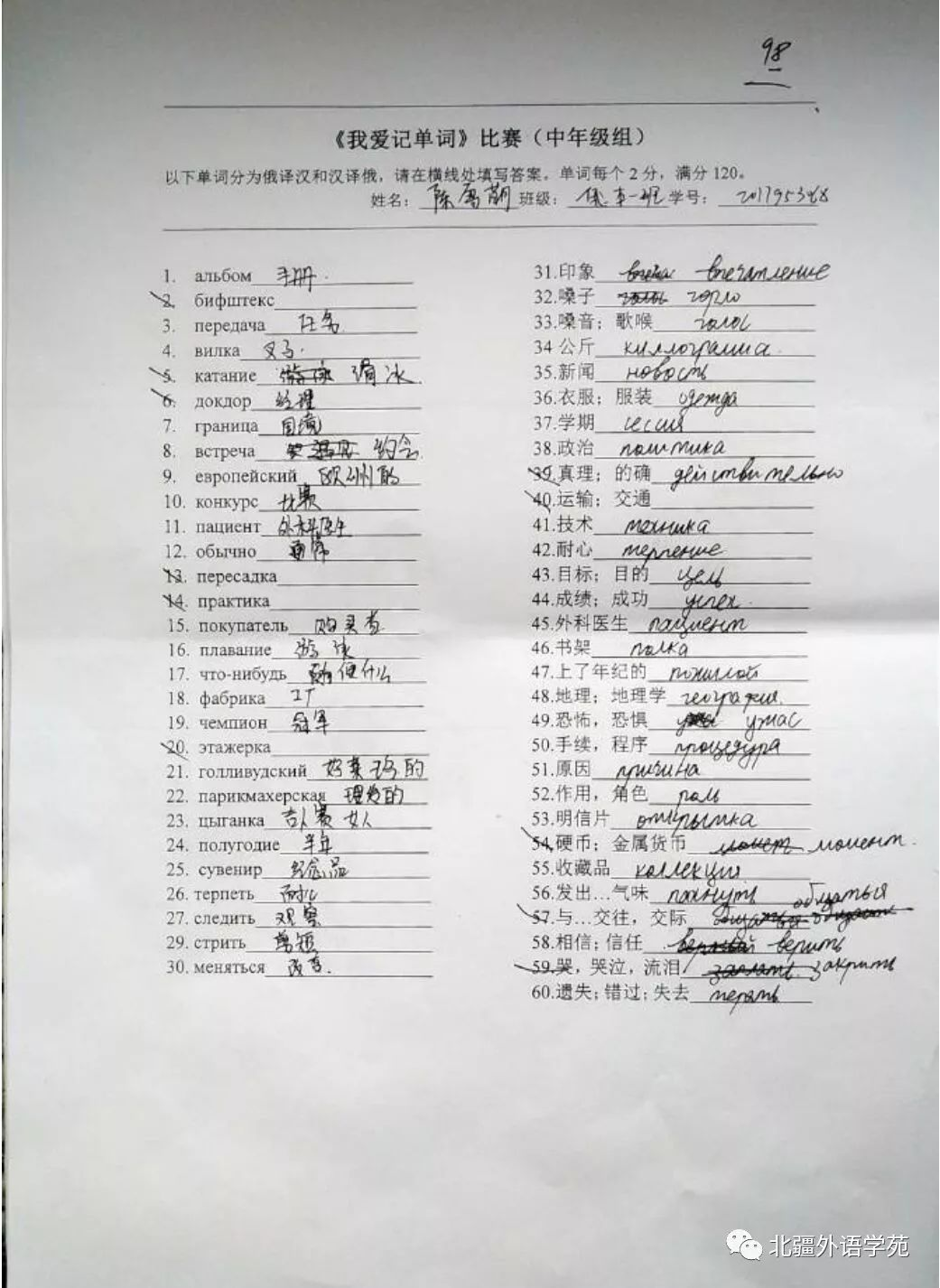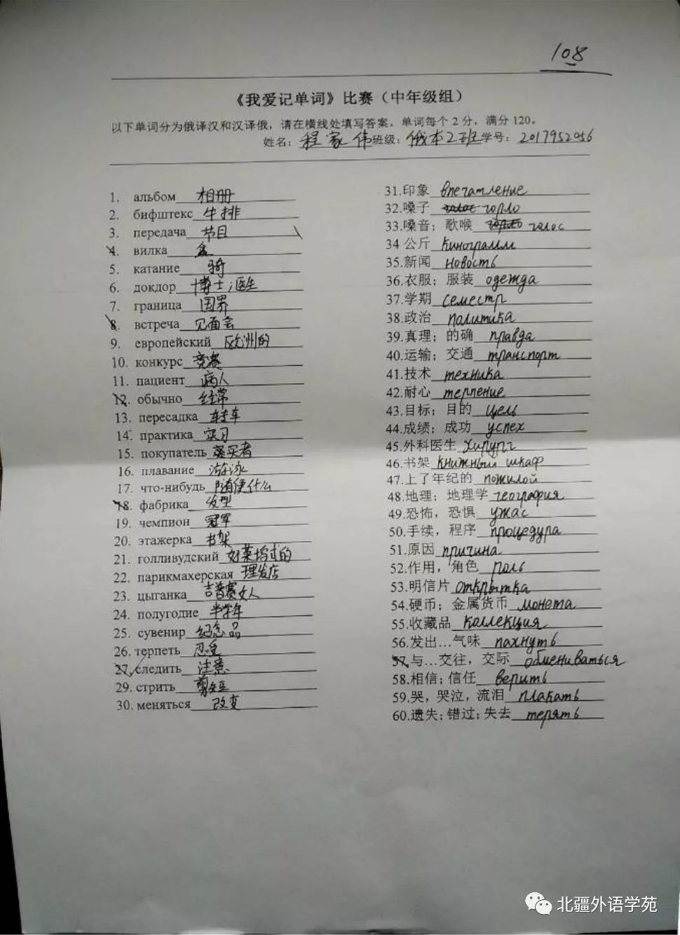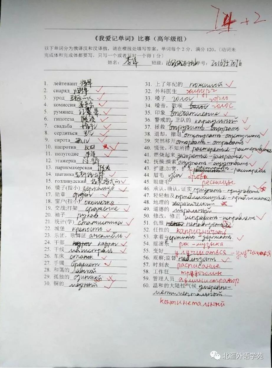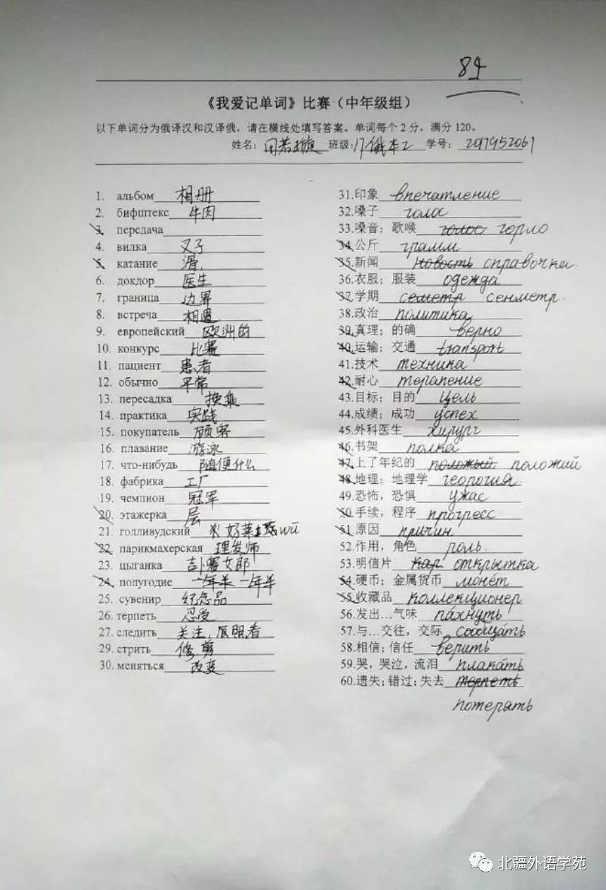 本次比赛分为低年级组、中年级组和高年级组(低年级组参赛选手皆为18级同学,中年级组参赛选手为17级同学,高年级组参赛选手为16级同学),本次大赛的主题紧密地结合了公司俄语员工专业课的学习进度,高年级组,中年级组和低年级组试卷难易程度不同,每套试卷上共有60个单词、30个汉语翻译俄语、30个俄语翻译汉语,参赛选手需要在60分钟内完成试卷。
