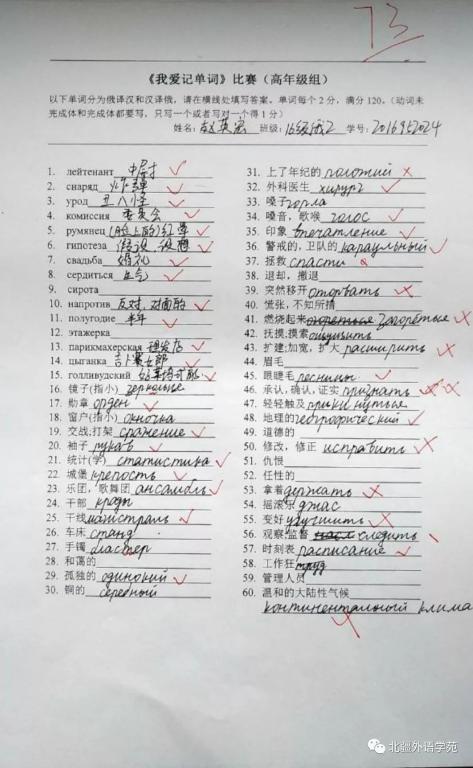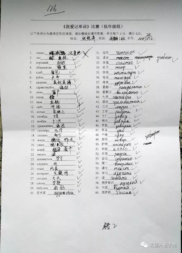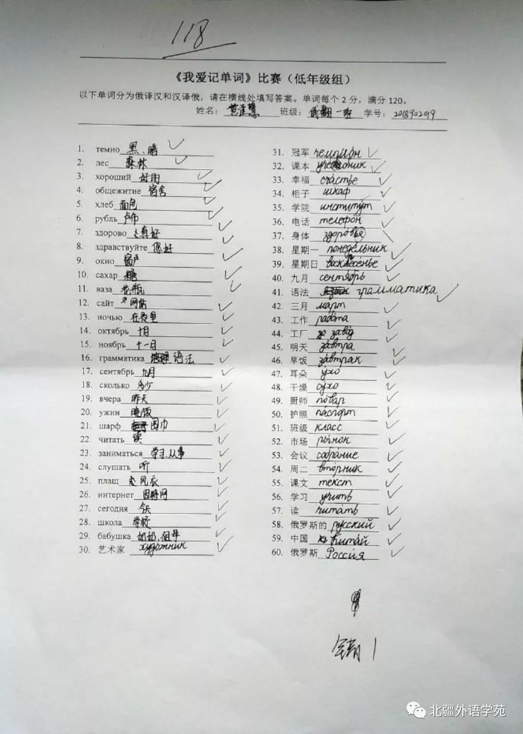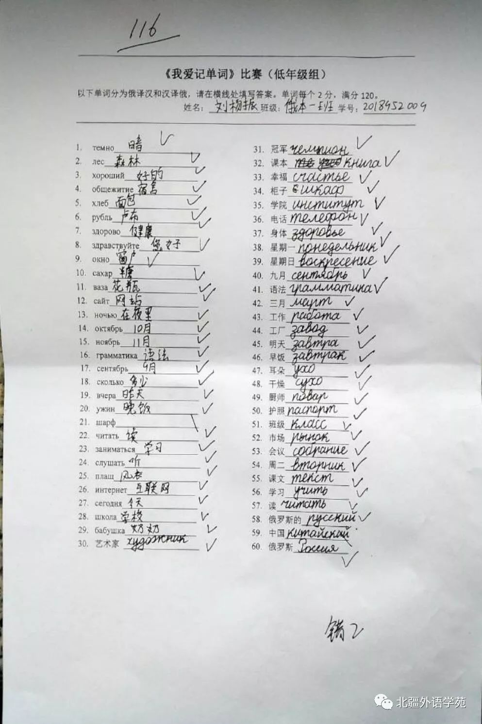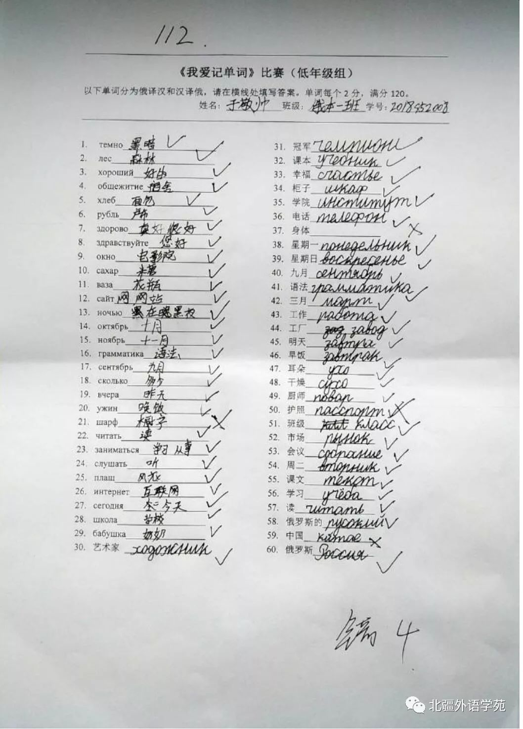 本次比赛分为低年级组、中年级组和高年级组(低年级组参赛选手皆为18级同学,中年级组参赛选手为17级同学,高年级组参赛选手为16级同学),本次大赛的主题紧密地结合了公司俄语员工专业课的学习进度,高年级组,中年级组和低年级组试卷难易程度不同,每套试卷上共有60个单词、30个汉语翻译俄语、30个俄语翻译汉语,参赛选手需要在60分钟内完成试卷。