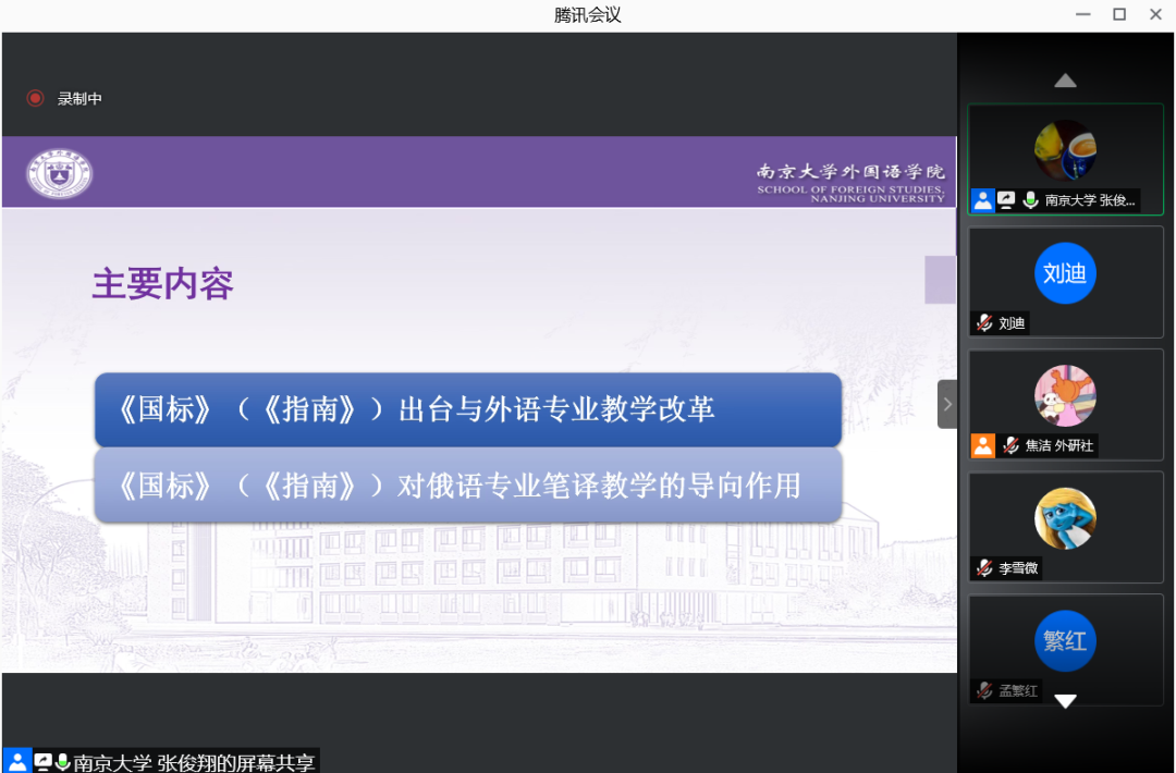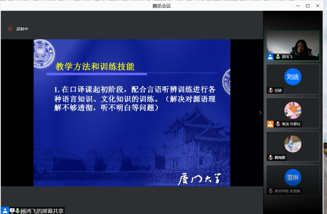 顾鸿飞教授以《谈以技能训练为主导的俄语专业本科阶段口译教学》为题,介绍了自己即将出版的口译教材中的40余种俄语口译技能训练方法,还分享了自己在口译研究中的经历与经验。