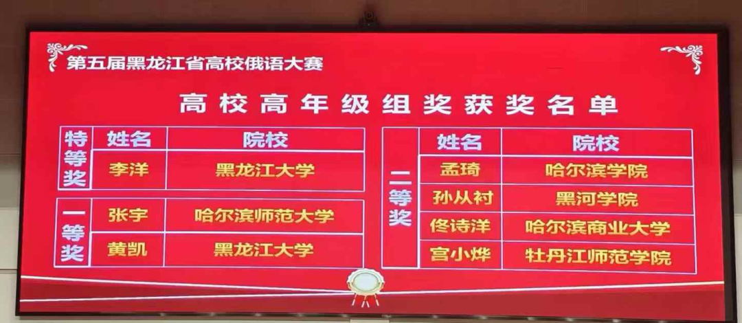 2024年10月13日,第五届黑龙江省高校俄语大赛在牡丹江师范学院落下帷幕。此次赛事由黑龙江省教育厅高教处、黑龙江省高等学校外国语言文学类专业教学指导委员会、黑龙江省普通高等学校创新创业教育指导委员会、黑龙江省俄语学会主办,牡丹江师范学院承办。来自哈尔滨工业大学、东北林业大学、黑龙江大学、哈尔滨师范大学等省内20所院校的67名选手参加了本次比赛。