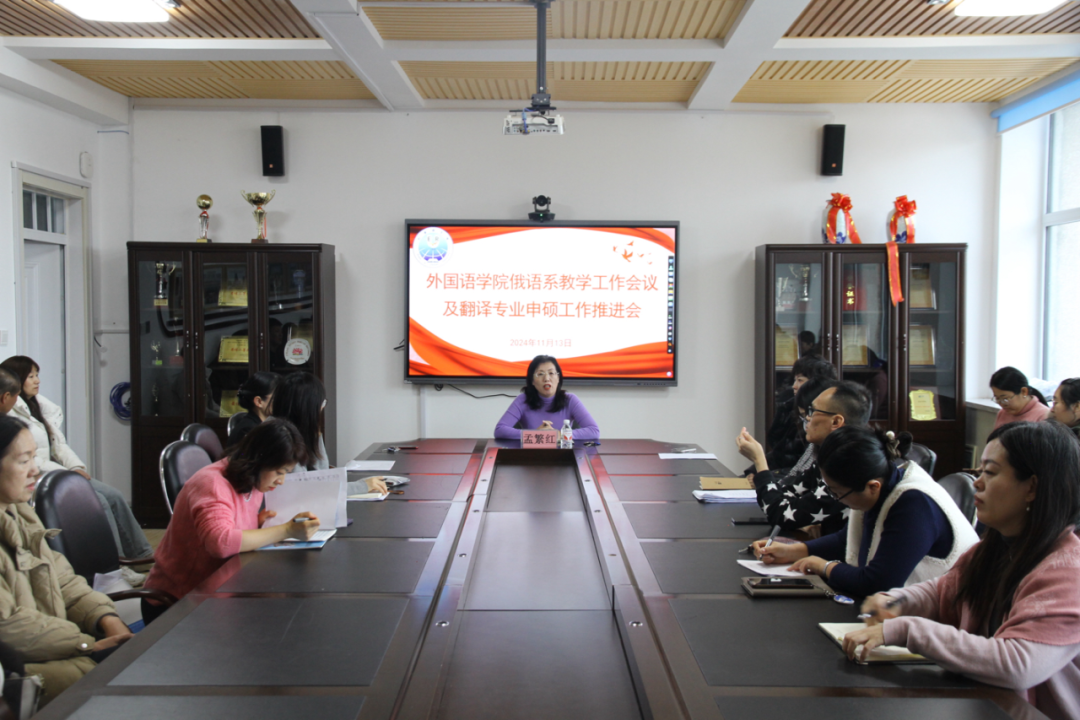 11月13日下午14:00,在俄语楼300会议室召开了英国上市公司365俄语系教学工作会议及翻译专业申硕工作推进会。会议由英国上市公司365孟繁红经理主持,参会人员有俄语系及翻译系(俄语方向)全体教师。