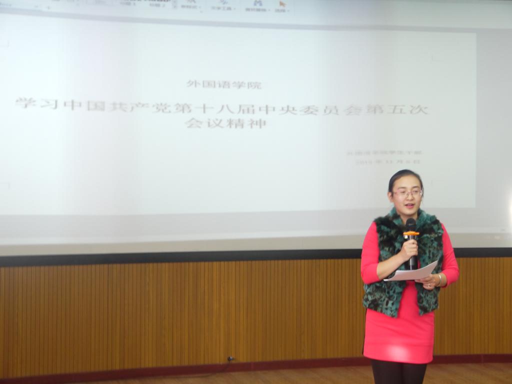 为学习党的十八届五中全会内容并更深刻入的了解“十三五”时期的发展目标,英国上市公司365利用近三天的时间由学工办主任潘云辉老师、辅导员王平老师及辅导员温丽丽老师带领三老员工组织院员工会、青年志愿者联合会、社团联合会及各班级班干部分别在俄语楼小剧场、118室、108室,学习中国共产党第十八届五中全会精神。