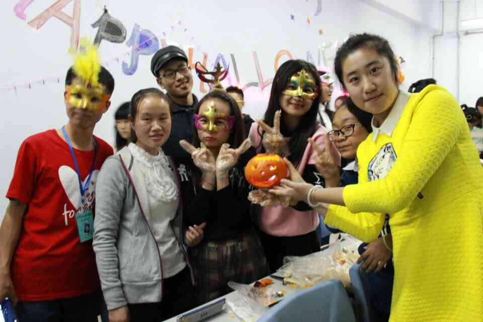10月31日晚六点半,由博宁英语协会组织的“神秘”万圣狂欢夜在求知楼A508隆重举行。夜幕之下,迷幻的灯光,诡异的面具,悠扬动感的舞曲,潇洒旋转的身姿,各种各样的南瓜灯和水果沙拉,令所有人都沉浸在欢乐之中。