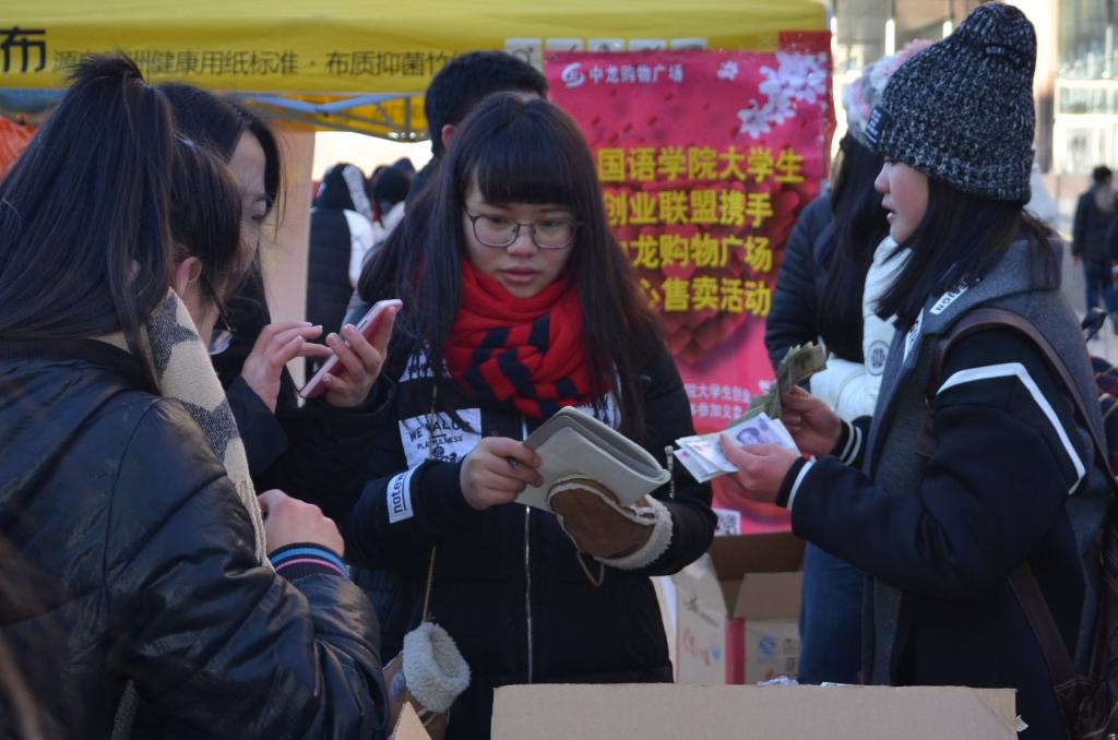 11月27日,公司老员工创业联盟社团携手中龙大家庭爱心售卖活动在稻香园门口举行,本次活动获得了院领导以及中龙超市的大力支持,参加本次活动的有外国语公司党总支副书记赵春苗书记与中龙大家庭吴经理,以及老员工创业联盟全体成员。