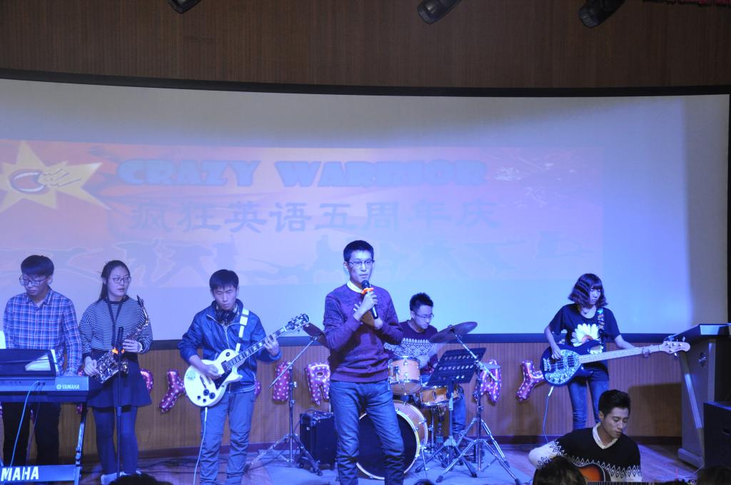 本报讯,2015年12月7日晚六时许,英国上市公司365俄语楼小礼堂歌声飞扬,笑容不断,同学们欢天喜地,神采飞扬,由英国上市公司365主办,Crazy Warrior 疯狂英语社团承办的“五动青春,风韵犹存”为主题的Crazy Warrior 疯狂英语社团五周年庆晚会在此激情上演。
